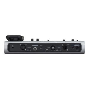 背面にはXLRマイクインプット(ファントム電源スイッチ付)、ヘッドフォンアウト(音量調整付)、XLRアウトプット(グラウンドリフトスイッチ付)、エフェクト用エクスプレッションペダル端子、USB、電源端子と電源スイッチとなっています。