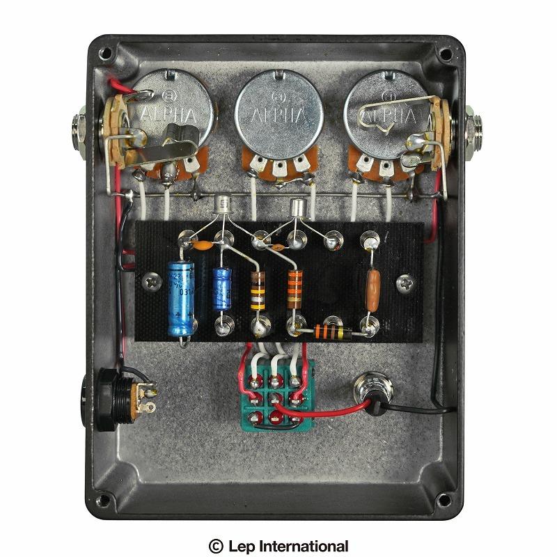 コントロールはVolumeとFuzzのみのスタンダードな構成となっています。駆動は電池のみ。