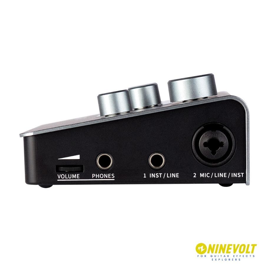 TS/XLRコンボ端子が1つと、TSフォン端子が1つ、およびヘッドフォンアウトと音量を搭載。