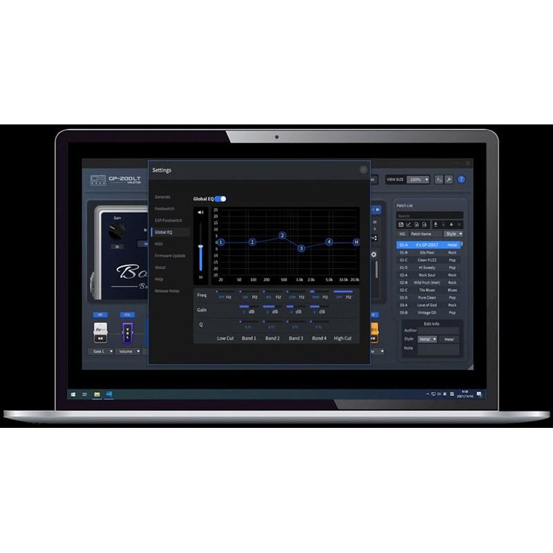 4つのフットスイッチを持つコンパクトなスタイルのモデル。モデル名「LT」と付いているとおり、フルサイズのGP-200というモデルもあるんですが、先にこちらが正規で入って来た形となります。