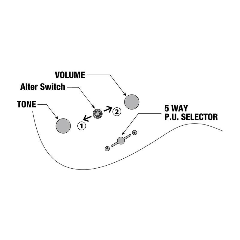 ピックアップはシングルコイルR1-7とハムバッカーQ58-7。9タイプのスイッチングを選択できるPUセレクターなどのコントロールとなっています。